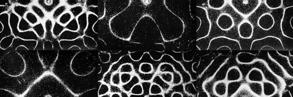 As we already discussed, vibrations on the Chladni plates are created when the natural frequency meets the frequency of the object. Each natural frequency creates its own standing wave patterns. But the question is, how do we see different patterns or shapes if we are always trying to meet the natural frequency to create the patterns? That's because each object has various natural frequencies, so as those different natural frequencies are met, unique patterns are created. At low frequencies, we have less vibration happening, which means there are fewer nodes, and so we have simpler shapes being created. But at high frequencies, we have more vibration, which results in more complicated patterns with curved and straight lines. Below are some images that show how as frequency increases, more and more complex patterns are being created.